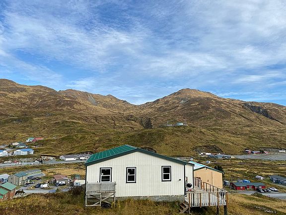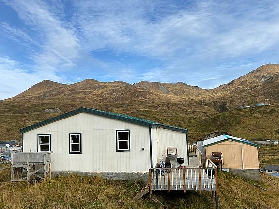 Hand crafted, private home with fabulous views overlooking Unalaska Lake and Ski Bowl. Abundant outdoor space with south-facing deck great for barbecues; tundra is an outdoor oasis, with nearby blueberries, and hiking and sledding access. Open floor plan with vaulted ceiling lets in ample light, and conserves heat--home is very efficient. Unfinished loft is an added storage area, along with the easily accessible crawl space. Unattached 400 square foot cabin efficiency is a rare bonus! Small kitchen, bath, and entry, complete with its own washer/dryer.