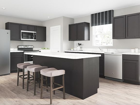 One of the newest To-Be-Built Floorplans at the new SOUTH BROOK...the ELDER! Its kitchen features a large pantry and island perfect for prep work and family time around the island. A large dining area off the kitchen is filled with natural light from a standard sliding glass door. This door makes it easy to add outdoor living when the time comes! The 2 car garage leads into a family entry with large closet and powder room, and a space for hooks and cubbies. The flex room is also accessible, making it perfect for a home office, kids’ play area or staging area for sports or recreation equipment. The upper level offers a loft as an informal gathering place to study, watch movies or play games, or families can choose to make it a 5th bedroom! All this on an unfinished basement. This home also offers The EcoBee programmable thermostat and Wifi-enabled garage door openers for your 2-car garage. The community features beautiful green space, mountain views, a fenced dog park and a community tot lot! Other floorplans and home sites available. Photos are representative only.