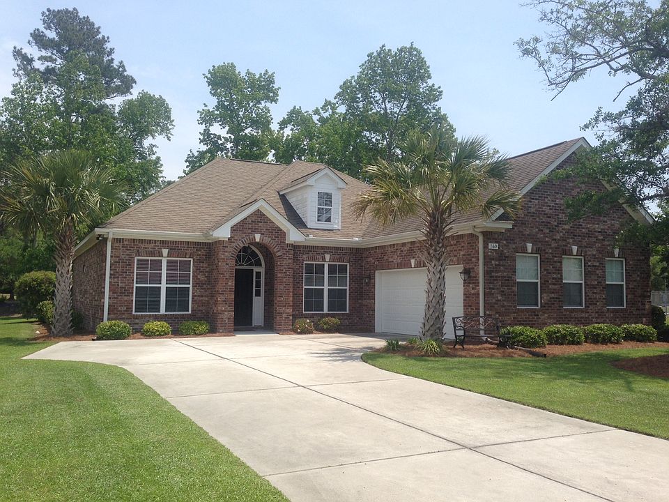 Beautiful all brick custom built home located in the fast growing community of Windsong in Little River. Enjoy living near the historic waterfront of Little River, shopping, dining, and entertainment. This single level 3 Br 2.5 bath home has an open, spacious split floor plan, featuring hardwood floors in living areas, tile in wet areas, granite countertops (kitchen and bathrooms), stainless steel appliances, gas fireplace, 10' ceilings, heavy trim and moldings throughout and much more. Gorgeous formal dining room with tray ceiling, archways, and columns. Spacious master bedroom suite with double tray ceiling and a large walk-in closet. Master bath with double sinks, separate water closet, and a whirlpool tub. Also features a laundry room, spacious double car garage with attic storage above, and a large screened in porch. Low HOA fees.