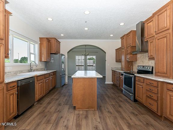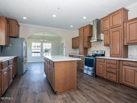 This home boasts an exquisite gourmet kitchen complete with a central island and tons of counter space, perfect for your culinary enjoyment. Offering a designated dining area, ideal for hosting meals and entertaining guests. The Master Bedroom is enhanced by a trey ceiling, exuding sophistication. The Master Bath is equipped with double sinks, a luxurious garden tub, a spacious walk-in shower, and an enormous walk-in closet, providing you with a lavish retreat. The home also offers a convenient mud/laundry room. With neutral tones throughout, the interior decor provides a versatile backdrop for personalization. Located a mere 17 miles away from MCAS Cherry Point, ensuring easy access for those associated with the base.