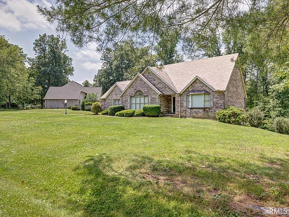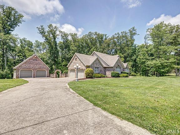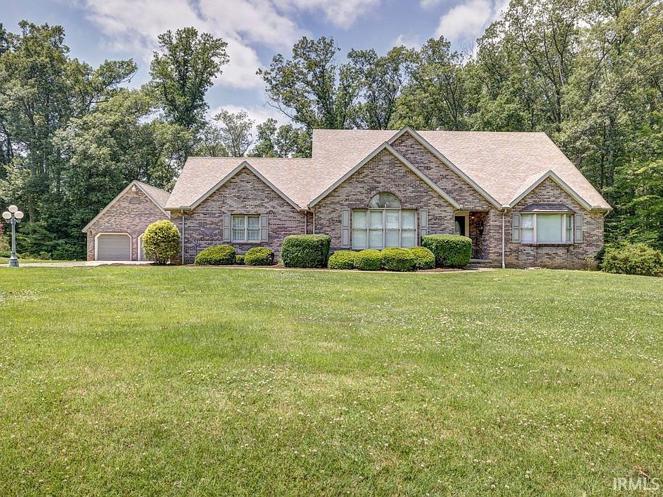 Beautiful brick ranch located in the well-established Woods neighborhood just off of Highway 37 with convenient access to Bloomington and Bedford! This solid built home offers an abundance of living space featuring: three main level bedrooms, including a primary suite with tray ceilings, large living room with fireplace, formal dining, and eat-in kitchen overlooking the covered deck with porch swing! The basement offers an oversized family room with fireplace, spacious bonus room for added flex space, bedroom and full bath. Roof and mechanicals have been replaced in recent years. A two car attached garage, and the addition of a two-car detached garage offer ample storage and workshop space! Outdoors you will find plenty of yard space to roam on the 1 acre estate sized lot with brick archway and mature landscaping. This sweet home is beaming with potential for a new owner to make it their own. Call today to schedule your showing!