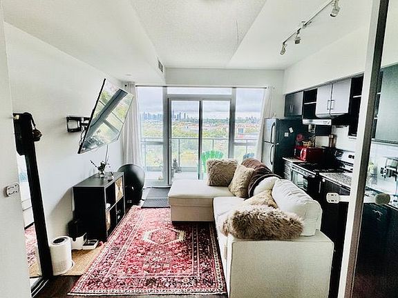 Welcome to this luxurious one-bedroom condo featuring breathtaking, unobstructed views of the Toronto skyline and iconic CN Tower.Enjoy 9-ft smooth ceilings and floor-to-ceiling windows that fill the home with natural light, creating a warm and inviting atmosphere.The residence offers a grand, hotel-style lobby with 24-hour security that is sure to impress your guests. Outdoor enthusiasts will love the nearby Don River Trails, while families will appreciate the childrens playground across the street and the adjacent skate park. Surrounded by lush parklands and expansive green space, this home provides the perfect balance of urban living and nature.Conveniently located in the heart of the city, youll be close to shopping, restaurants, public transit, the upcoming Eglinton LRT, major highways, and the DVP. Parking and locker are included. A fantastic opportunity for first-time buyers or investors.
