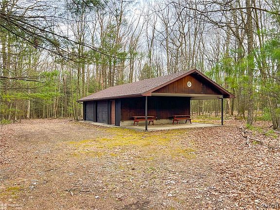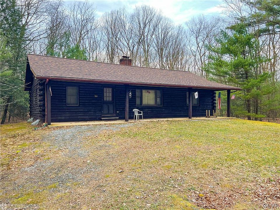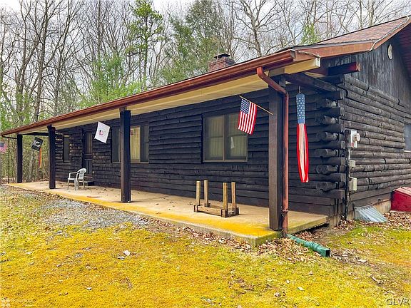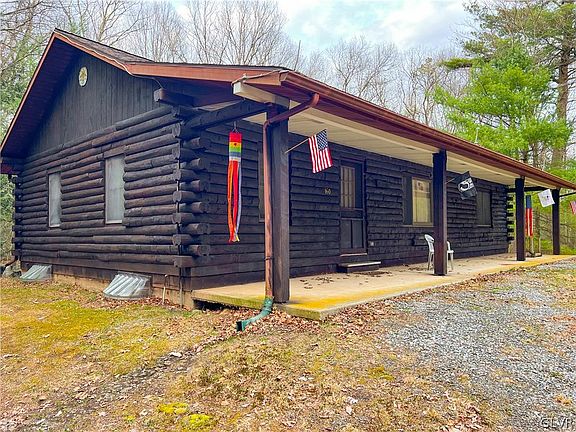 Rare Find! Log Cabin on 5 Acres! Two car detached garage with electric and water and covered patio! One owner! House and garage roof were replaced in 2021! Inside you will find an open concept floor plan! Cozy family room with wood stove and dining room with plenty of windows for natural light! Spacious kitchen with ample workspace and cabinet storage! Convenient first floor laundry and pantry with access to the rear yard! Master bedroom with double closets and on suite bath complete with a jacuzzi tub! Two additional nice sized bedrooms are on the other side and an additional full bath with soaking tub/shower! Plenty of storage space here! Concrete poured full basement with a wood/coal stove and bilco door! Being sold as is where is! There is a right of way for the private road and an easement for the driveway. Enjoy walking to the local orchard and minutes from Beltzville lake! Campgrounds nearby, Blue Mountain Ski area, hiking, biking, Jim thorpe and 15 minutes to the turnpike, local hospitals, shopping and dining! This is true oasis!