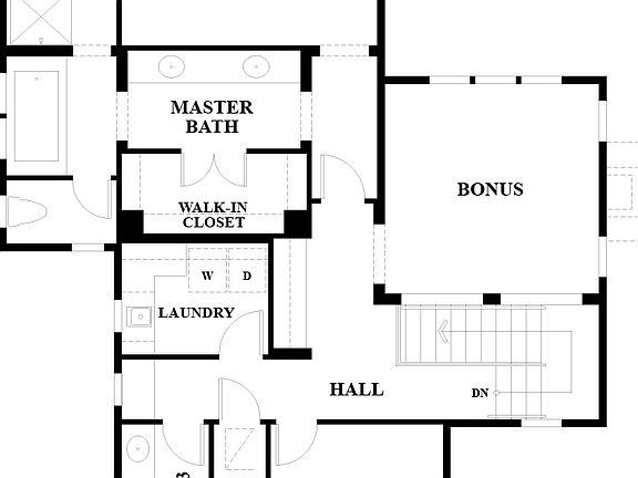 If you're intrigued by the idea of your kitchen facing out to two living spaces, this floor plan is for you. Whether living room and dining room or formal living and family, there's opportunity here for your imagination to take over. Tucked into a quiet corner with its own hallway, a downstairs guestroom rounds out the first floor of this 2,336 sq ft home. Upstairs an ingenious layout positions the master suite and secondary bedroom at opposite ends of the home for maximum privacy, and provides a generous bonus room for