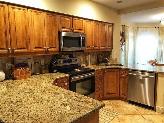 Excellent condition recently remodeled condo in the very beautiful Vineyards neighborhood of Tra Vigne. This luxury 1st floor 3+den (or formal dining room ) end unit home offers 10' ceilings and custom finishes.Features include chef's kitchen with SS appliances,granite countertops,18' by 18' diagonal tile,full size breakfast area and den with bay windows. Also built-in cabinetry,stranded bamboo hardwood flooring and travertine marble floors in the bathrooms. Great room has tray ceilings. Designer cabinetry in bathrooms.Master bath has large separate shower and luxurious spa tub, double vanities and 8'x 8' walk-in closet with adjustable racks.Remote controlled ceiling fans in every room.UV tinting on sliding glass doors for energy efficiency. Custom Hunter Douglas privacy screens.Split floor plan.Large 27' screened -in lanai.A/C unit installed in 2012. Neighborhood has 4 community pools.One of which is convienently located near the home. The award winning, and highly desired to live in, Vineyards Community offers many amenities.Available is a luxurious large private Country Club with 27 holes of golf,restaurant,tennis complex and exercise facility.Also a regional County Park.