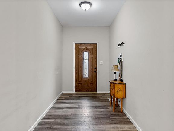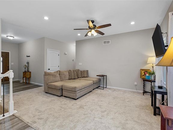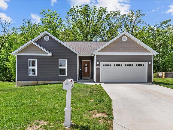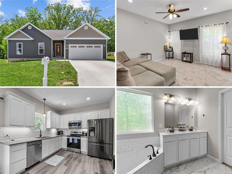 2020-built OPEN CONCEPT ranch backs to WOODS in quiet country setting just 5 minutes from Hwy 47. Easy-care vinyl exterior, shake detail, coach lights, covered entry & 2-car garage. Foyer opens to living room with HIGH 9-FT ceilings, upgraded windows, recessed lights & water-resistant LUXURY VINYL PLANK flooring. WONDERFUL NATURAL LIGHT. Eat-in kitchen with white shaker underlit cabinets, crown molding, QUARTZ COUNTERS & tile backsplash. Sliding door to PRIVATE PATIO overlooking woods - ideal for entertaining. Owners suite features WALK-IN CLOSET, barn door to adult-height dual vanity, CORNER TUB with picture window & separate tiled shower. Secondary bedrooms share hall bath with adult-height vanity & tub/shower combo. 2-panel interior doors & breezy ceiling fans throughout. Convenient main laundry. Downstairs bonus room with closet, plus TONS OF STORAGE & rough-in bath. Eco-friendly all-electric systems. Unincorporated with few restrictions, 15 minutes to Troy. $2500 carpet allowance. Some Accessible Features