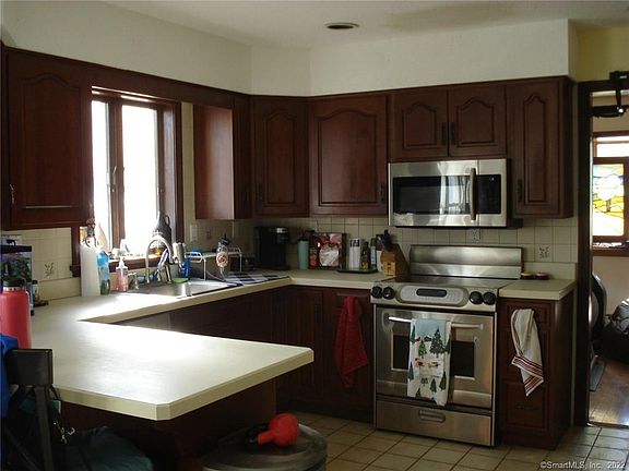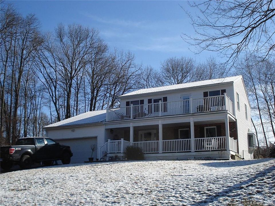 You'll find this 3 bedroom, 2.5 bath colonial within walking distance to the Groton Sub Base. It sits high above the Thames River on a no through street with winter water views. A newer trex deck spans the main level of the home with a second deck adjacent to the huge main bedroom. A living room, eat-in kitchen, dining room, laundry room and family room, and half bath complete the first floor. Living and dining rooms have newer hardwoods. The two car garage opens to the family room where you'll find a pellet stove which is a terrific winter heating source. There is access to the rear deck from the family room. The second floor main bedroom is complete with a full bath and walkin closet and has direct access to a large upper deck. Two additional bedrooms and another bath are on this second floor. This home is ready for your personal touches. Selling "as is". Inspections are for buyers' information only. Seller can make no repairs. Cats do not go outside.