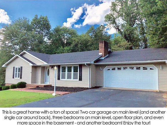 Welcome to 160 Vista View Lane! Located in the lovely Huntington Hills subdivision of Ridgeway, this home packs in a lot for the price, boasting three bedrooms on the main level - including a master - and over 3,000 square feet of living space! A spacious, two car garage sits right off the main level. There is an additional, detached garage for storage in the back - with electricity! The kitchen, dining and family room are open to one another, creating a nice flow, and the family room has a stone fireplace with gas logs! Large deck off the dining room, and another, private deck off the master bedroom! The basement is HUGE and has another family room, bedroom, and large utility room. Back yard fenced for dogs! Convenient for commuters, with 220 and 58 bypass nearby! Call for an appointment!