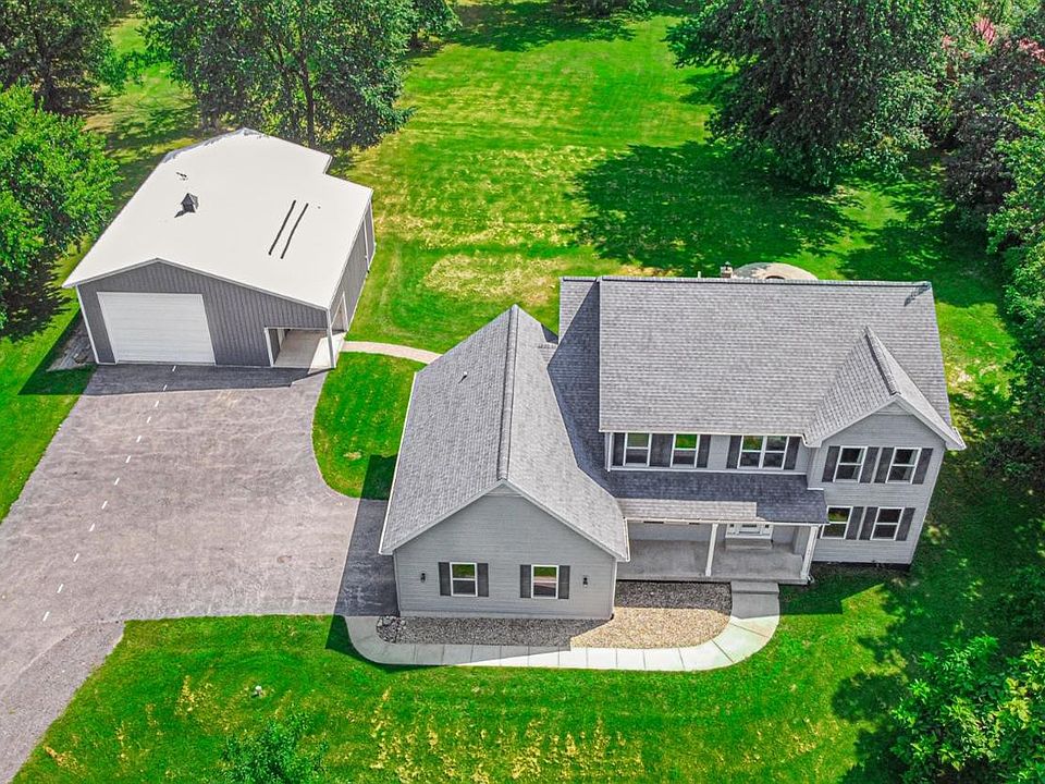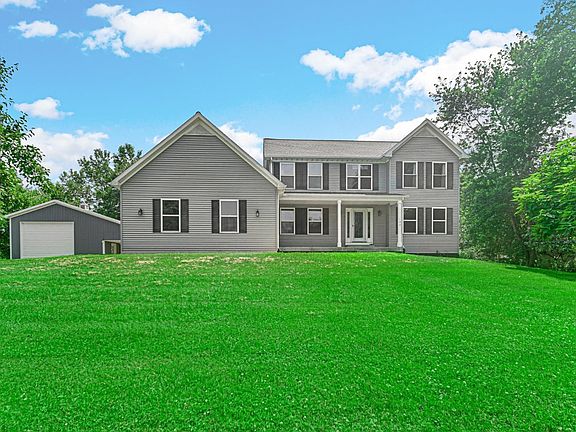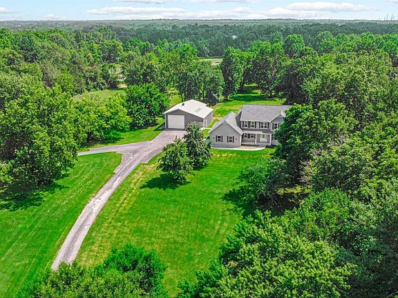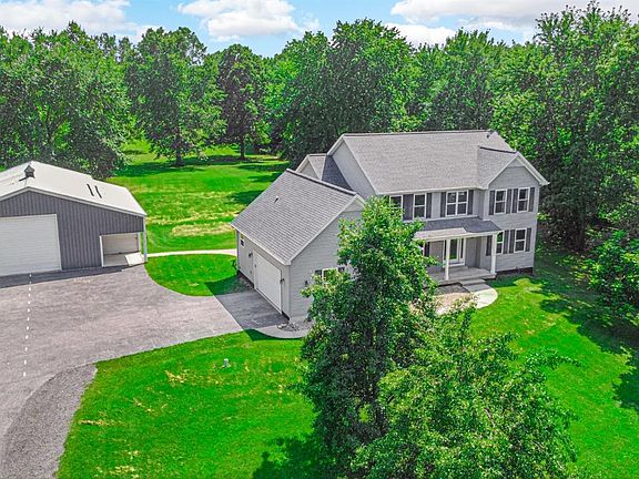 Country living at it's finest! Enjoy your morning coffee on the deck surrounded by trees and nature or by the custom firepit that is perfect for fall evenings! Step inside and be greeted by so much space! Hardwood floors throughout most of the main floor along with brand new vinyl flooring installed in the kitchen and rec room. Large den/office overlooking the spacious front yard. 3 large bedrooms on the second floor including owners suite with 12x12 walk in closet and beautiful custom tile shower. Supersized laundry room is on 2nd floor for added convenience. Basement is finished with a splash of color to set the tone for a fun night of movies in the theater area or to enjoy the party at the wet bar with full train set cruising around the diameter of the basement! Large egress windows in basement for possible future bedrooms and a full bathroom as well. In addition to the attached oversized garage is a super sized pole barn for all the toys, extra storage or a workshop!