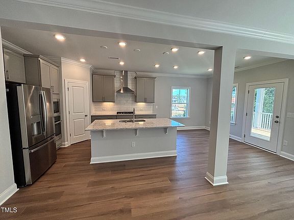 This stunning Tyler plan with a 3-car garage showcases our Elite Design Package and thoughtful details throughout. The welcoming covered front porch leads into a spacious foyer with a study featuring French doors and a formal dining room. The heart of the home is a gourmet kitchen with a large quartz island, 5-burner cooktop, stainless chimney hood, and premium appliances. The kitchen opens to a bright family room and casual dining area that extends to a screened porch and grilling patio, perfect for indoor-outdoor living. A guest suite with full bath is conveniently located on the first floor. Designer touches include black iron railings, LVP stairs, and LVP flooring throughout the main living areas. Upstairs, a spacious game room with French doors offers flexible living. The Annandale community features a clubhouse with swimming pool, 24/7 fitness center, playground, and athletic field. Ideally located near major highways and minutes from downtown Raleigh, residents also enjoy shopping and dining at Swift Creek Shopping Plaza and White Oak Crossing, with outdoor recreation at Lake Benson Park, Langdon Pond, and Hinnant Farms Vineyard & Winery nearby. Photos are of a model home for representation only.