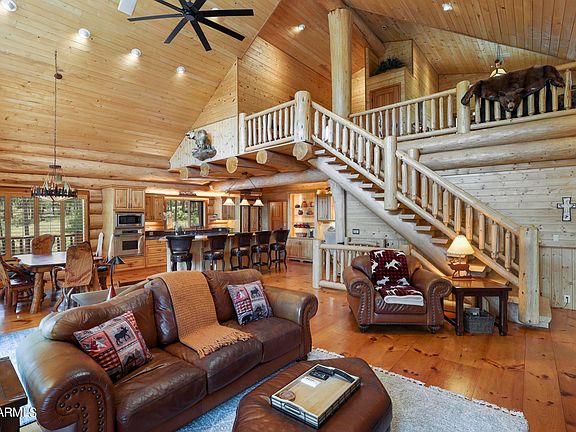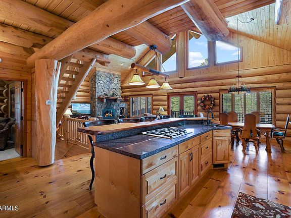 Rare opportunity to own the ONLY Western Red CEDAR FULL LOG cabin in gorgeous and gated Hunter Creek. This cabin was beautifully designed and handcrafted by Pioneer Log Homes of Canada. From the moment you step inside, the natural beauty and architecture of the logs will captivate your attention! This 4 bed/3.5 bath cabin is perfect for large family gatherings with seamless indoor/outdoor living to include 1900 sq ft of maintenance free decks, 2 separate living areas plus a game room with pool table in the loft. For the primary suite, choose from the main floor private retreat or the newly remodeled entire lower level which offers a private bedroom/bath along with an additional entertainment area that includes a wet bar, built in cabinets and in-floor radiant heating to provide for an enjoyable climatized space. The lower level partial in ground basement and garage walls are constructed of ICF (Insulating Concrete Forms) for added durability and insulation factor. The metal roof provides peace of mind in the forest and there is a portable generator as well. The high efficiency wood burning fireplace makes for a cozy cabin retreat in the winter and the new AC will keep you cool in the summer. New AC/Propane Heater, LED recessed cans/trims throughout, under/over LED tape lighting, electric car charger, bathroom refresh, exterior logs professionally recoated, wood floors resealed. Extra perks include a water softener, tankless propane water heater, propane cooktop, surround sound speakers. Don't miss out on this .52 acre fairly level and useable lot that is a rarity in the community. HOA fee includes private water, sewer, street maintenance. Home value preservation as community requires rentals to be a minimum of 30 days. Many community events scheduled in and around Hunter and Christopher Creek, Payson and all of Rim Country. Enjoy the nearby lakes and trails surrounding this beautiful area of Arizona. Best of all most furnishings and personal property items are included! Check with agent for a few exclusions. Act quickly before it's gone. You can be the next proud owner of this architectural beauty!