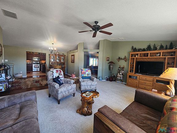 HOME FOR SALE IN WESTERN NEW MEXICO. 20.57 perfectly groomed acres with an immaculate 2007 Palm Harbor triple wide manufactured home built to modular specifications. This 2,356 square foot 3 bedroom 2.5 bath home has many upgrades including six inch walls, granite countertops, built-in office desk, new dishwasher and refrigerator, Kraus extra-deep double kitchen sink, toilet/bidet combo and large garden tub in master bath, walk-in bedroom closets, tankless hot water heater, and metal roof. The home boasts a living area plus a den. Washer/dryer. The closed loop geothermal system provides heating and cooling at a fraction of the cost of traditional energy. The back-up Generac generator provides instant energy in the event of a power outage. Outbuildings include a 40' X 50" metal shop/garage and 30' X 30' metal two car garage . Both buildings are heavy duty bolt-up metal buildings with insulation, concrete floors, and electricity. The 2000 square foot building has a 4' walkthrough door, 12' X 14' rollup door, 10' X 12" rollup door, and 16" sidewalls with 17' at the peak. This building is set-up as a man cave with a woodburning stove, television, Bose stereo, and water. The 900 square foot garage has a 3' walkthrough door, two 10' X 12" rollup doors, 10' sidewalls with 12' at the peak, and a workbench. Additional features include a 9'6" X 12' porch with composite decking and windows. Sit on your porch and enjoy the views of the Sawtooth Mountains. Right off the porch sits an outdoor hot tub and gazebo. The hut tub is in excellent condition. A fire pit provides the perfect place to relax and enjoy the views. The property is fenced on 2.5 sides and borders a ranch to the south. Property consists of two lots (Lots 190 & 191) within Indian Springs Subdivision. The covenants allow for two homes on each lot, so there is a possibility for a total of four homes to be built. The covenants (with minimal restrictions) are available upon request. The manufactured home sits on a permanent foundation, is taxed as real property, and will qualify for financing. The property has been maintained to exceed anyone's expectations. From the stacked rock walls to the immense amount of gravel driveways, this property needs no repairs and is move-in ready.