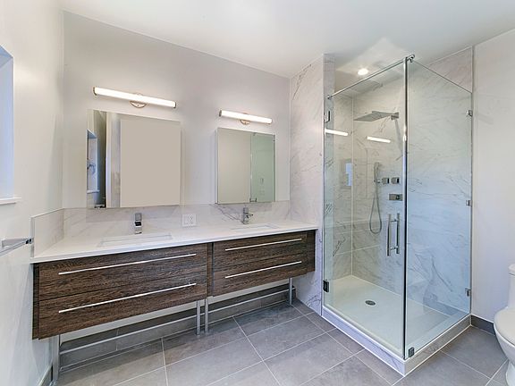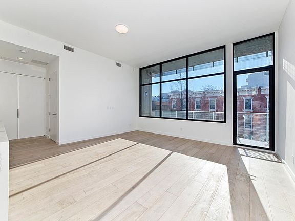 PLEASE EMAIL FOR VIDEO TOUR This one checks all the boxes! No-fee, high ceilings, private outdoor space, boutique and high-end building, huge windows, central-air, in unit washer and dryer, common roof deck with grill, close to all transportation and parking available! Incredibly bright and large 2 bed, 2 bath condo with terrace in Greenpoint. High-end new construction with split bedrooms, 12 foot ceilings, top of the line appliances (Bertazzoni & Fisher Paykel) and washer/dryer. Both bedrooms are large and master has an ensuite bath featuring a walk-in shower, double vanity and radiant heat floors. Hardwood floors throughout and central heat and air. The building features a virtual doorman, elevator, common roof deck and covered parking. Very easy transportation with the ferry, G train, 3 bus lines (B32, 43 and 62) as well as multiple Citi Bike stations all within 2-3 blocks.