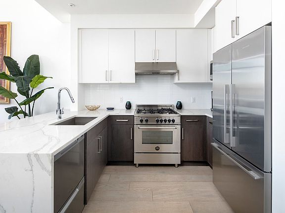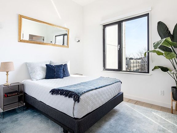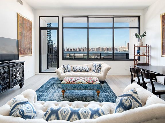 Welcome to 5C at 160 West Street, an incredibly bright and loft-inspired condominium located on the idyllic corner of Huron and West Streets in Greenpoint. Defining features of this beautifully designed, 1,103 square foot loft include: 11.5 foot ceilings, dramatic floor to ceiling windows in the great room, a large balcony and private cabana, epic eastern and western light and a thoughtful floor plan featuring two winged bedrooms, two full bathrooms and a ton of storage. Natural light floods into 5C as soon as you enter the home. A formal entryway greets you upon arrival with ample space for a bench or consul and room to display large pieces of art. The dramatic ceiling heights and open floor plan are a necessary departure from most of the neighborhood's cookie cutter construction. Highlights of the living room include floor to ceiling windows facing west, a large private balcony, 6 inch wide oak floors, a large and U-shaped open kitchen with state-of-the-art appliances and a palette of bright + beautiful materials and finishes. Past the kitchen, a setback master suite faces east and features a striking master bathroom with a large walk-in-shower, radiant-heated floors and a custom vanity with double sinks and thoughtful storage. The oversized and private second bedroom has a picture window facing west and a large double closet. Additional features of 5C include in unit washer/dryer and a massive coat closet located in the entryway. The Gibraltar is a 6-story, 14-unit boutique condominium with a distinctive Equitone Grey facade. In addition to 5C's private balcony and private cabana, there is also a common roof deck, on-site parking, a virtual doorman and package room, bike storage and private cage storage for each apartment. The best of North Brooklyn is right outside your front door in this dynamic and magical pocket of Greenpoint's burgeoning waterfront. Take advantage of nearby destinations and amenities including the shops + restaurants on Franklin Street, the G train, the East River Ferry and all of the brand new retail, and development making its way into this immediate location. Tenant currently in place until November 2019. *Taxes reflect seller abatement of 50% for the next five years*
