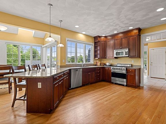 Beautiful 5-bedroom 3.5 bath home in prestigious Ames Meadows, a sought-after neighborhood abutting Groton Town Forest with access to miles of scenic trails. Privately sited on a lush, landscaped lot, this 4,000+ sq ft home features a stunning granite kitchen with Viking & Sub-Zero appliances, oversized peninsula, and sunlit breakfast room overlooking the saltwater pool and deck. The first floor showcases hardwoods, a family room with gas fireplace and built-ins, formal living and dining rooms, and a spectacular great room with gas fireplace, cathedral ceiling, and French doors. Two versatile rooms offer ideal home office or guest space. Mudroom, laundry, and half bath complete the main level. Upstairs, the luxurious primary suite boasts a walk-in closet and spa bath; two bedrooms share a family bath, and a fourth enjoys a private ensuite. Outdoors, enjoy vibrant gardens, lush lawn, cabana, pool, and a 3-car garage—all in a private, exceptional vibrant community!