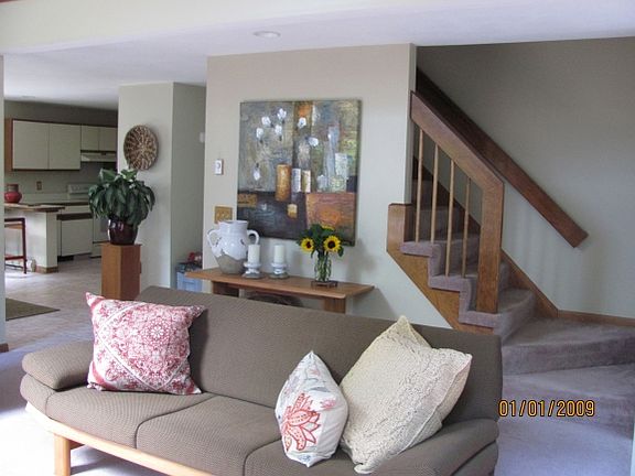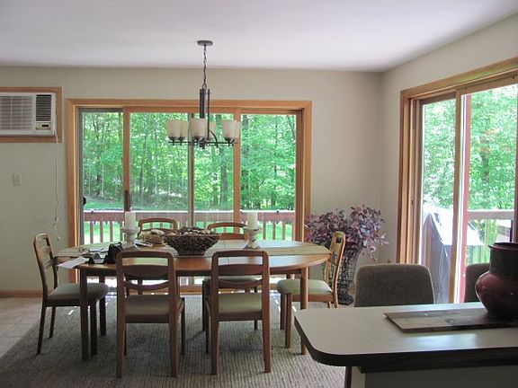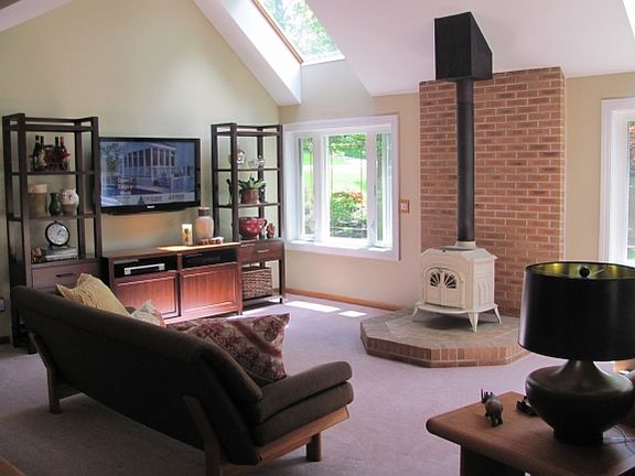 Spacious contemporary in impeccable condition. Tiled eat in kitchen with new wrap around deck and sliders. Bright and sunny cathedral living room with skylites and newer windows, and wood stove. First floor bedroom /or office, new bath and laundry. Second floor features Master bedroom with slider and deck, new bathroom and gleaming Brazilian cherry flooring. Second bedroom , and second bathroom all new.Third floor features finished bonus room. professionally landscaped with beautiful perennials. Heat smart system, new decks, all new baths, new lighting. Pride of ownership. Move in condition. A pleasure to show.