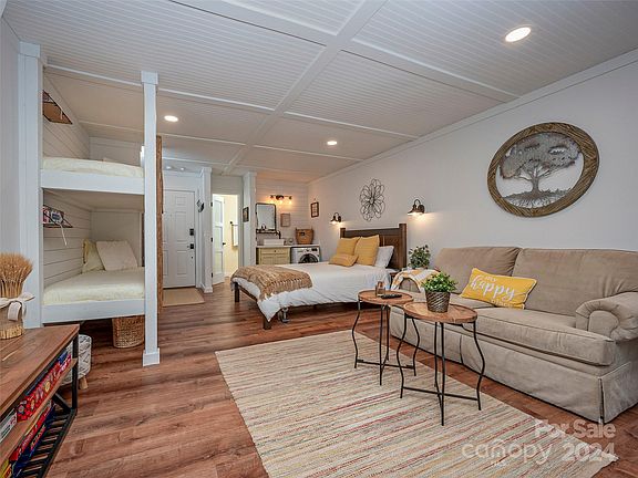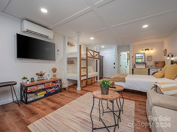 Discover this fully remodeled Apple Valley Villas condo at Rumbling Bald on Lake Lure! This one-of-a-kind, upper corner unit boasts a custom kitchen with quartz countertops, rough edge open shelving, and high-end appliances. The center island seats four and has multiple functions for storage. This charming, expertly laid out studio has all the comfort of home, and is being sold fully furnished. A queen bed and twin custom bunks allow comfortable sleeping for four. Renovations begin with enhanced ceiling aesthetics, flooring, and electrical upgrades. The fully remodeled bathroom boasts a combo washer/dryer for convenience. This tiny home is set for full-time living with European-designed storage options galore! The rear balcony affords seasonal mountain views and shady summertime breezes. Apple Valley common spaces include picnic pavilion and outdoor grills. All Rumbling Bald amenities are just a golf cart ride away! Apple Valley Villas are desirable for rental income potential.