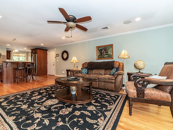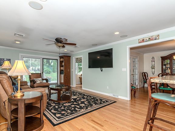 Stunning kitchen features two working stations, island with built-ins, Bosch double ovens, granite, wine cooler, recessed lighting. Kitchen opens to family room with built-in speaker system and french doors to your private backyard with built-in pool, trek decking, gardens and pool house. Hardwood floors, 3 full baths spacious formal dining room. Den/Office with built-ins. Living room with bay/bow window has a remote controlled Gas fireplace. Master bedroom suite with walk-in shower. 2 car attached garage and carport for additional parking. Windows replaced. Furnace and A/C 6 years. Roof and gutter heaters, insulated attic. Alarm system. A well-cared for home in a sought after neighborhood.
