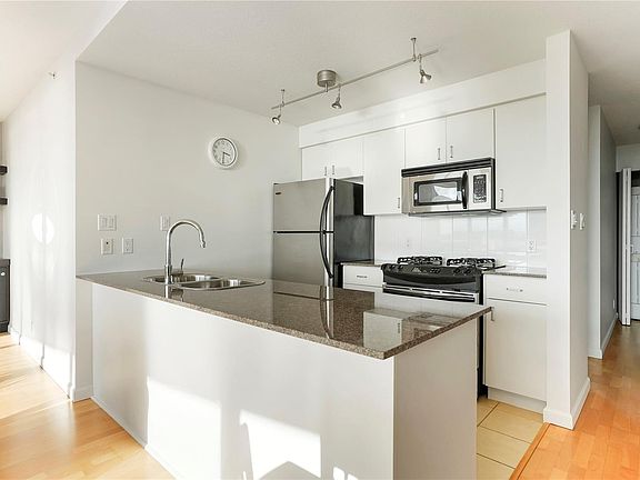Location, Location, Location! Welcome to this bright and sunny 2 bedroom condo set in a superb location with all of the amenities at your fingertips, so you can leave your car at home!! With only one party wall, this corner unit is quiet and feels rather private with floor to ceiling windows, a large deck and sweeping views over the park towards the harbour and olympic mountains. With two spacious bedrooms with the primary complete with a generous walk in closet and ensuite. Not only does this building have an awesome location, and park-like setting, easy access to transit and bike routes to safely ride into downtown in minutes, it also has EV ready parking, a great fitness centre and lounge area with a pool table for entertaining your friends. Come by and check it out today!!