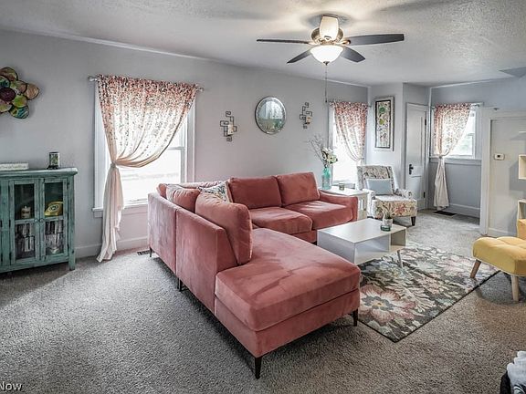 You’ll love this updated 4 bedroom colonial in a prime North Canton location! The inviting front porch welcomes you inside to a bright and airy living room with plenty of windows. Luxury vinyl plank flooring flows from the dining room, complete with crown molding, into the remodeled kitchen featuring butcher block counters, stainless steel appliances, and a subway tile backsplash. An updated guest bath completes the main level. Upstairs, you’ll find 3 delightful bedrooms and a refreshed full bath with shiplap accent walls and a charming balcony. The finished attic, currently a walk-in closet, has new carpeting and could be a 4th bedroom, playroom, or home office. The full basement includes lots of storage space, laundry, and an added half bath. Step outside to a nice sized yard and a cozy patio nestled between the house and a 2 car garage. Freshly painted throughout with spacious rooms and in the desirable North Canton school district. Don’t miss out—schedule your showing today!