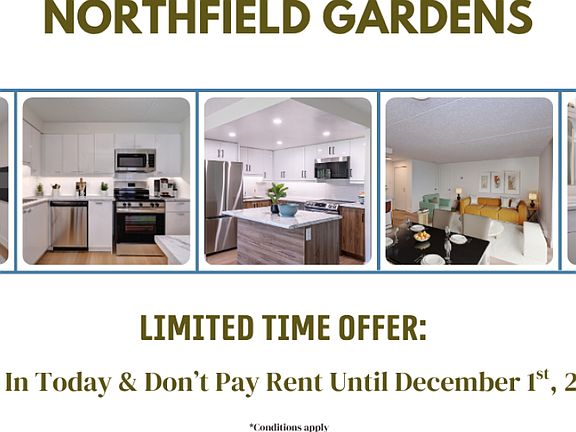 AboutWelcome to Northfield Gardens. These clean, modern 1 & 2 bedroom apartments are in 6 buildings nestled in a park-like setting in North Waterloo. Most of the apartments are upgraded to include Luxury Plank Flooring in common and bedroom(s), custom ceramic tiles in the kitchen and bath(s). Apartments include 3 appliances (fridge, stove, and built-in air conditioner) and are + electricity and + water. Community Amenities Elevators Security onsite Certified Rental Building On-Site Professional Management Suite Amenities Balconies