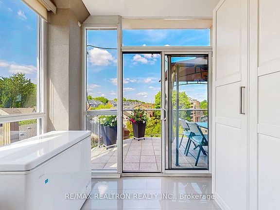 Welcome to Grand Manor One, in the heart of Old Woodbridge. Suite 609 at 160 Woodbridge Avenue is the only available penthouse in this boutique mid-rise, offering the perfect combination of luxury, comfort, and convenience.This sun-filled, fully upgraded residence features a private foyer entry, a smart split-bedroom layout, and an open concept living/dining area ideal for entertaining. The chefs kitchen is equipped with an oversized island, custom cabinetry, granite countertop, and premium appliances including a Sub-Zero fridge. Engineered hardwood flooring runs throughout.The primary retreat boasts his-and-hers closets plus a bespoke floor-to-ceiling wardrobe system for exceptional storage. Bathrooms are modern and highlighted by a brand-new walk-in shower.Signature outdoor living includes a large balcony with gazebo and full patio set for four, perfect for alfresco dining. Before stepping onto the open balcony, a custom floor-to-ceiling glass enclosure extends the space, offering a versatile den or office flooded with natural light. An electric fireplace for additional comfort in winter and a built-in armoire completes the area with a clean, high-end finish. Building amenities include a rooftop deck with BBQs, party/meet rooms, ample of Visitors parking around the building, Continuous remote surveillance for round-the-clock security. 24-hour camera monitoring and secure entry systems give complete safety-Enjoy privacy & modern security without paying for a concierge you rarely need.Heat, water, locker, and parking are all included in maintenance. Exclusive bonus: locker is located on the rooftop level, steps from the suite.Just outside your door, Market Lane offers cafés, shops, fine dining, BMO, medical and dental clinics, and physiotherapy services. Nearby parks, trails, and community landmarks complete the vibrant, walkable lifestyle, with transit and major highways only minutes away.Lock-and-leave living at its best a rare penthouse opportunity in Market