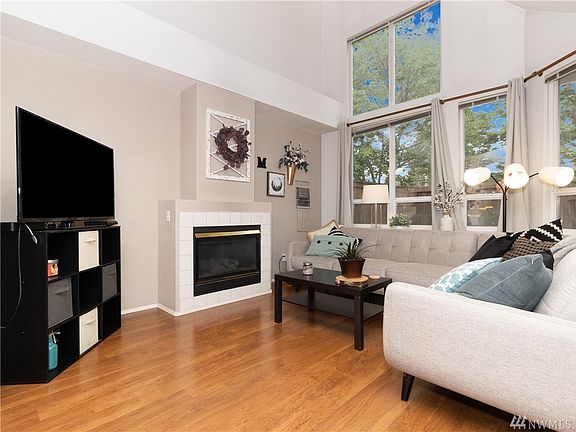 You'll love it here! Spacious open floor plan w/ vaulted ceilings, lots of natural light, and fireplace all open up to a relaxing private patio/yard. Master bedroom w/ en-suite bath & walk-in closet. 2nd bedroom w/ full bath. 1 car garage, extra parking available in the complex. Gated community w/ clubhouse, fitness & sports court. Across the street from Silver Lake w/ trails & bistro. Shopping, dining, and commuting is made easy in this fantastic location. Easy commute!