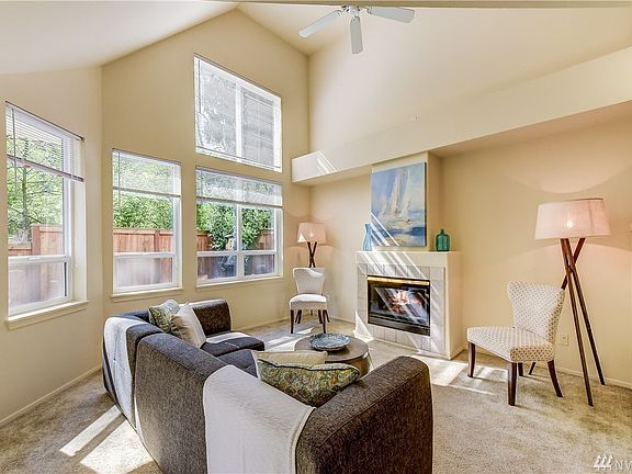 Well maintained, freshly painted townhome in secure, gated community. Relax in your private yard that overlooks a greenbelt. Open floor plan with vaulted ceilings. Lots of natural light. Clubhouse has kitchen, exercise room and large sitting area. Silver Lake Park is across the street. Very close to shopping and restaurants. Easy access to I-5 and park & ride. All appliances stay. Three bedrooms with 2 1/2 baths. This home is move in ready.