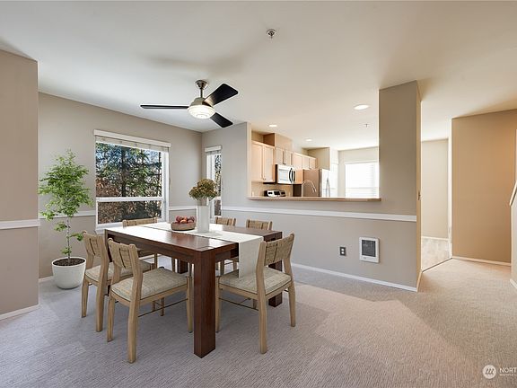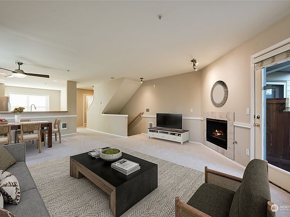 Updated townhome style condo in the gated Casper's Mill complex with community activity center offering clubhouse with kitchen, exercise room, play area, car wash station & sports court. Home features an open floor plan, new carpet and lvp flooring on the main and second floor, gas fireplace, insulated windows with blinds, ceiling fan, and 2 car tandem garage . Private fully fenced patio on Greenbelt. Pet friendly (subject to restrictions). Plenty of guest parking. Half block to Everett Park & walking distance to Thornton A. Sullivan Park/beach & play area, cooking area & trails. This park is amazing & on the lake! Easy access to I-5. Come take a look!