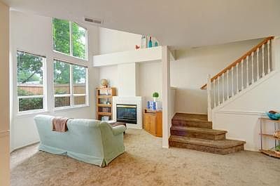 Very popular Village at Caspers Mill is a gated community near Silver Lake and is conveniently located near I-5, Boeing, Mill Creek Town Center, shopping and restaurants. It is a well maintained community with newly painted exterior siding and new fences. This townhome is open and light with vaulted ceilings, fresh paint and new carpet. Gas fireplace in living room. Private, fenced patio. This community includes a gym, sport court, plenty of parking, club house and community car wash.