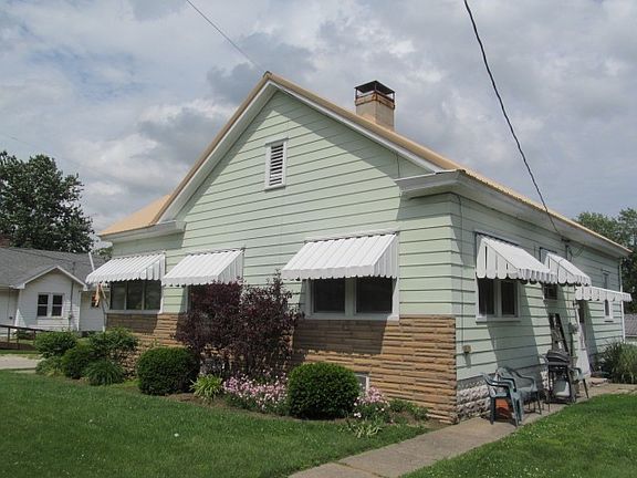 This Two Bedroom Rambler is move in ready! Living Room, Dining Room, Kitchen with Appliances that stay, Remodeled Bathroom, Partial Basement, Enclosed Front Porch and Corner Lot. Several updates include FA/CA-7yrs ago & Metal Roof this year
