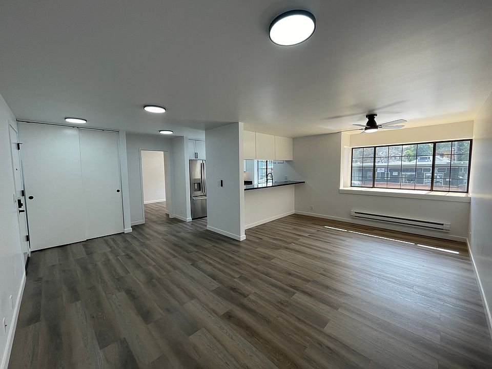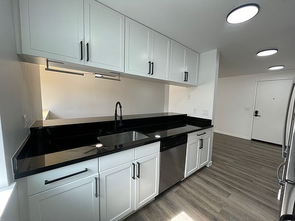 Located at the west end of downtown San Rafael, this newly renovated, modern and updated apartment (as in brand new) features new cabinets, new appliances, ice maker/water in the refrigerator door, new bathroom with a marble shower surround, floating vanity, granite slab counters and modern black fixtures including a black stainless steel kitchen sink. This community features secure, assigned covered parking, secure entry with state of the art intercom/keyless door locking system that communicates and grant access from your smart phone. Other amenities include electronic payments, video surveillance, rooftop deck with panoramic views, on site management and 24-hour app based customer service communication with management. Year to start lease required. No month to month to start. Tenants are responsible for all utilities. Owner pays trash, sewer, and water which is billed out monthly through the online payment portal. PG&E is separately metered and is the responsibility of the tenant to set up. One parking space is included in the lease. Any additional cars are $50-$75 per month dependent on size of spot.