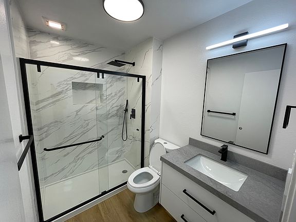 Located at the west end of downtown San Rafael, this newly renovated, modern and updated apartment (as in brand new) features new cabinets, new appliances, ice maker/water in the refrigerator door, new bathroom with a marble shower surround, floating vanity, granite slab counters and modern black fixtures including a black stainless steel kitchen sink. This community features secure, assigned covered parking, secure entry with state of the art intercom/keyless door locking system that communicates and grant access from your smart phone. Other amenities include electronic payments, video surveillance, rooftop deck with panoramic views, on site management and 24-hour app based customer service communication with management. Year to start lease required. Owner pays trash, water & sewer which is billed monthly to tenants. One parking space is included in lease. Any additional cars would be $50 per month.