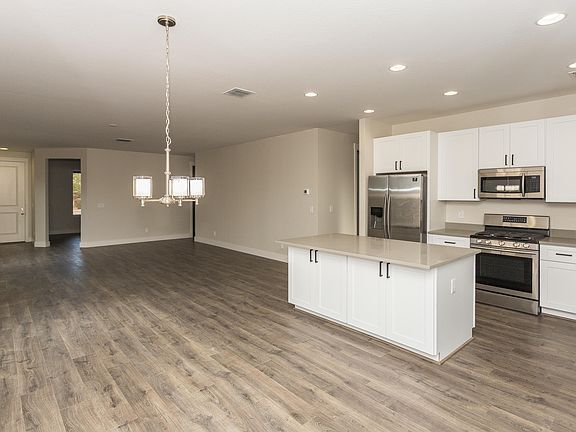 New Build in desirable Highlands Ranch features 4bd/2 bath/3 car tandem garage. Open spacious floorplan w/greatroom design concept. Kitchen boasts quartz counters, solid wood shaker style cabinetry including soft close doors & drawers w/full extension slides. Generous island w/bar area to seat 3 plus extra storage underneath. Large Master w/dual raised height vanity, beautiful custom tile walk-in shower, private water closet & spacious walk in closet. Master and guest bedrooms include ceiling fans. Guest bath has raised height vanity and custom tile tub surrounds. Laundry room is situated for full size stacked washer/ & dryer to afford space for quartz counter folding area and large pantry storage cabinet. CONTINUED