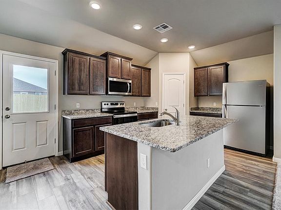 Boasting with charm, this single-story home in El Reno has plenty of space that growing families will appreciate. This four-bedroom home hosts two full baths, a spacious family room, chef-ready kitchen, private master suite with an en-suite bathroom and an abundance of included upgrades. Enjoy the thoughtfully designed, open-concept layout that creates the perfect space for entertaining. Here, impressive upgrades galore. Included at no extra cost, you will want to see for yourself how the energy-efficient Whirlpool® appliances, sparkling granite countertops, designer wood cabinetry with crown molding and a Wi-Fi-enabled garage door opener are included at no extra cost to you!