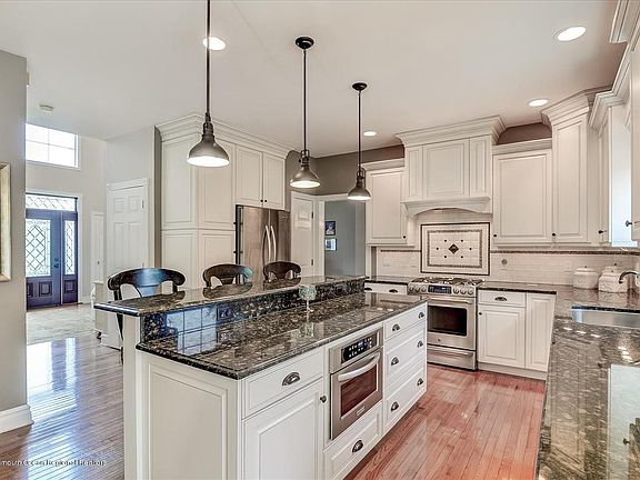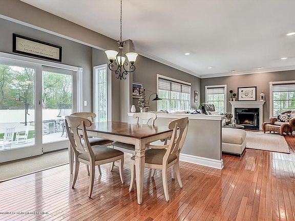 An entertainers paradise. Custom colonial on 1.385 acres. Heated, salt water pool with hot tub, 2 waterfalls and slide. Outdoor kitchen, gas firepit, sonos surround sound, basketball court. As you enter this home you will see gleaming hardwood floors, 2 story foyer, big newer kitchen with stainless applicances, granite countertops and breakfast room. Family room with wood burning fireplace. Crown moldings, master bedroom with tray ceiling, walkin custom closet . Master bath has a stall shower, jacuzzi tub, double sinks and tile floor. Other three bedrooms are carpeted with custom closets. Full finished basement with a home theater and seating, pool table, bar with a sink, sump pump and laminate hardwood flooring. Security System. Finished basement is an additional 1,300 square feet.