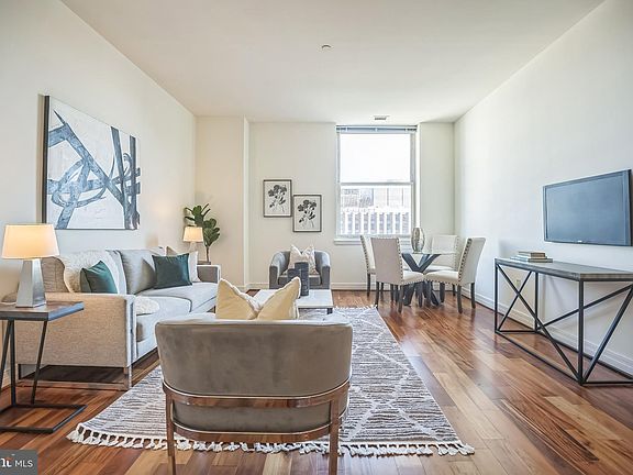 Great location for this 2 bedroom, 2 bath lovely condo with great views. The location on the Benjamin Franklin Parkway is close proximity to center city shopping, restaurants, museums and has direct access to Suburban train station. Easy to get to I95, I76 and 30th Street station. The condo itself has great light, beautiful hardwood floors and very large windows. The open chef's kitchen has stainless steel appliances, granite counter tops, breakfast bar and excellent cabinet space. Full size washer and dryer and additional storage. Primary bedroom with good closets and en suite bath. Amenities include 24 hour front desk, fitness center, rooftop terrace, club room and conference room.