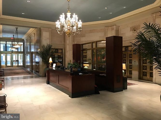 Fantastic opportunity to live in a world class historic building. 24 hour doorman, fitness center, Starbucks Cafe, Tir Na Nog restaurant, direct access to Suburban Station. Close to all museums and shops. The Barnes Exhibit and Dilworth Park. Easy access to I-76, I-95 and major roadways. Beautiful historical building with features of crown molding and expansive hallways, breathtaking rooftop terrace. This is a large, bright, one bedroom, one bathroom with open floor plan. This condo features valet parking, high ceilings and large windows that let in the beautiful sunlight. Enjoy the large kitchen with breakfast bar and washer dryer located in storage area. Bedroom has large upgraded walk in closet. This property occupied with original owner since it was remodeled in 2002. TWO storage units are included with this beautiful condo.( Smoke free unit) Make your appointment today.