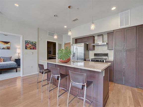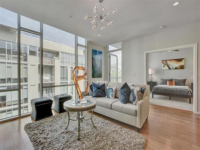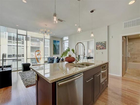 Beautiful 1 Bedroom Condo Located In Prestigious Barton Place Condos, In The Heart of SOLA. Located On The 5th Floor With a Private Balcony Offering Breathtaking Views. Upscale Finish Outs, Include Bosch Appliances, Granite Counters, Wood Floors, Window Treatments, & New Carpet In Master Bedroom. Luxurious Amenities Include Resort Style Pool, Rooftop Terrace, Exercise/Fitness Room, & Community Garden. Just Steps Away From Zilker Park, Lady Bird Lake, Zach Theatre, Barton Springs Pool & Downtown.