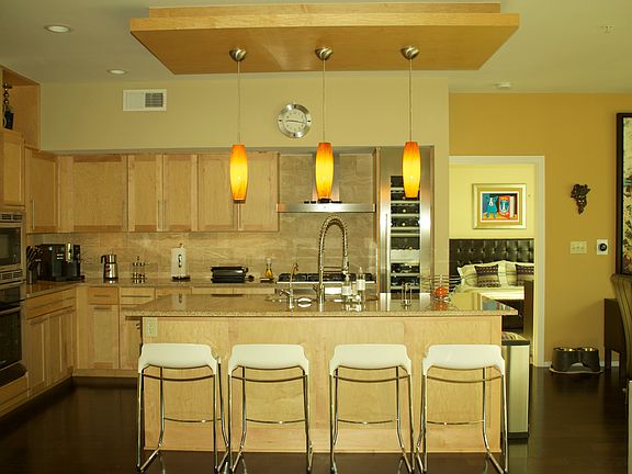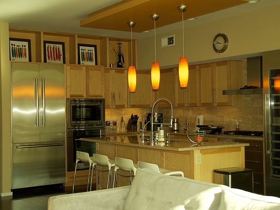 Open floor, floor to ceiling windows, dark polished oak flooring and tall ceilings! Spacious, bright, open kitchen, granite counters, stainless steel appliances, built-in Oven and Microwave combo, 18 x 84" built-in wine cooler and a island! Relaxing veranda. Master bedroom with separate shower, tub and dual sinks! Secure building with elevator access, community includes a community garden, rooftop patio with grilling area, and a dog run!