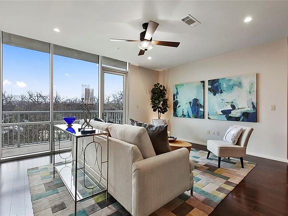 BartonPlace Gem! Coveted floor plan with exterior, east-facing treed view! Live where Austin plays - hit the hike & bike trail just out the front door, walk to Zilker Park, Barton Springs Pool and several local Austin restaurants. Move-in ready with fresh paint throughout and brand-new bedroom carpet. Lux amenities include: Heated Saltwater Pool, Gym, Guest Suite, Rooftop Terraces, 24/7 onsite security, Community Garden & more. Welcome Home!