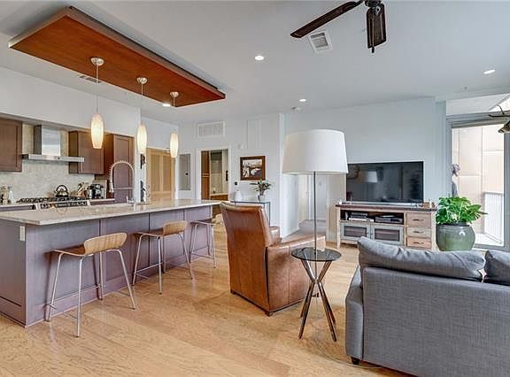 This stunning 2 bedroom, 2 bath condo sits on the 3rd floor of Barton Place. Features include stainless appliances, lovely wood floors, two peaceful balconies, and a rooftop terrace for grilling and entertaining. Enjoy both secluded living and quick access to Zilker Park, many local restaurants, and downtown Austin. The condo has two assigned parking spaces, as well as a storage unit for any extra space you may need. Live a relaxed lifestyle while enjoying all that Austin has to offer!