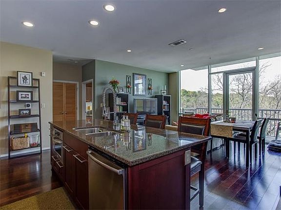 Amazing condo on 4th floor w/tree top views at Bartonplace*Amazing sunsets from unit. Luxury living in a totally hip location. Bosch appliances, hardwood floors, built-in desk, wine fridge and custom bar. Custom closets, Nest thermostat, blackout shades in bedrooms. Shady Grove unplugged from your balcony. Salt water pool, gym, community garden, rooftop terrace, owner's lounge, 24 hour security on site. Walk to Hike and Bike Trail, Zilker, Austin events, restaurants and more!