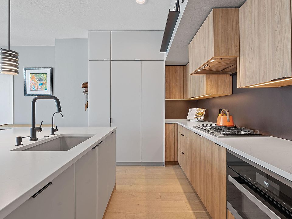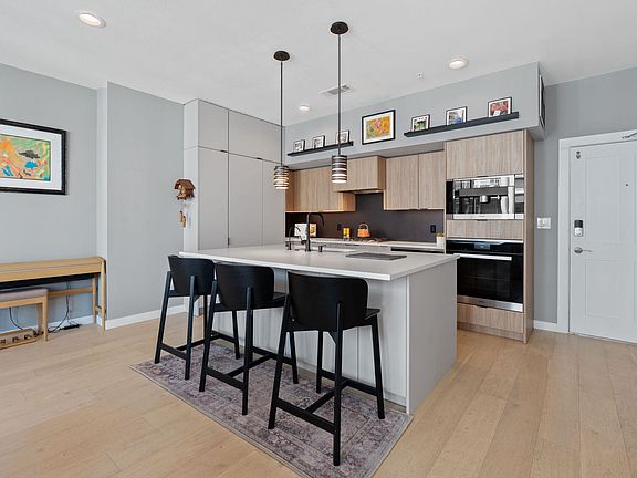 Welcome to exceptional living at BartonPlace, where modern style meets everyday functionality in this beautifully reimagined residence. Impeccable craftsmanship and curated upgrades elevate every inch—from the chef-caliber kitchen and flexible guest suite to the stunning primary suite. Design-forward living starts in the fully renovated kitchen, where custom European cabinetry pairs seamlessly with a sleek, paneled Miele appliance suite. Highlights include a built-in coffee system, five-burner cooktop with dedicated wok feature, and a high-performance speed oven combining convection and microwave capabilities. The primary suite delivers a 5-star living experience with rich white oak feature walls, access to a secluded terrace, and a spa-inspired bath designed with precision and purpose. The guest bedroom easily transforms into a dynamic office space, featuring a built-in Murphy bed, abundant storage, and a fold-down work surface ideal for remote productivity. Smart technology and modern comforts continue throughout, with updated recessed LED lighting, app-enabled motorized shades in key living spaces, fresh-air screen doors opening to balconies, and a newer HVAC system providing peace of mind. Live where Austin plays at BartonPlace! Perfectly positioned between iconic Zilker Park and the vibrant city center, this incredible community truly offers residents the best of both worlds. BartonPlace offers residents a mix of modern luxury, convenience, and an active, outdoorsy lifestyle, making it one of Austin's most sought-after residential condo communities. Community amenities include a heated saltwater pool with a lounging and grilling area, four rooftop terraces with grills, expansive outdoor spaces including a community garden, an Owner’s lounge with kitchenette, a guest suite for overnight visitors, a fitness room, a dog run, and a secure, gated environment with attentive 24-hour concierge service.