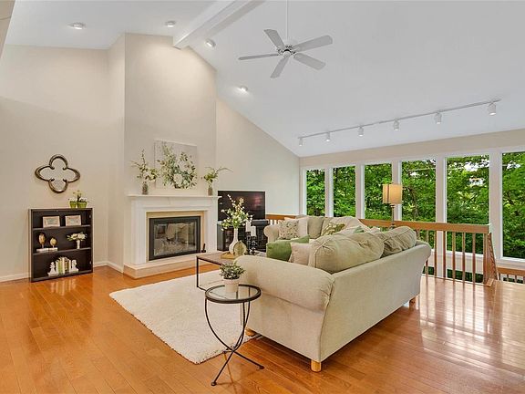 Beautiful 5 bed 3.5 bath atrium ranch sitting on a private, wooded cul-de-sac lot. Looking for privacy in a quiet neighborhood-this is it! Enter thru a tiled foyer w/ two closets into a large vaulted great room w/gas fp, wall of windows & hardwood floors. Enjoy the open floor plan w/ 9' ceilings, many floor to ceiling windows, vibrant views of the forest, & large dining room w/ bay windows, crown molding & hardwood floors. The kitchen boasts 42" cabinets, a perfect blend of Corianne & granite countertops, tile backsplash, two pantries, & center island. The breakfast room has wall to ceiling windows w/ a walkout to a private covered deck. The master suite has his/hers walk-in closets, luxury bath w/ granite double sink countertop, separate shower & tub plus stain glass window. Finally, two more nicely sized bedrooms, guest bath w/ quartz countertop, & full bath & granite countertop. LL- two large beds, a huge family room w/ wood fp, bar & office. Outside large deck for entertaining.