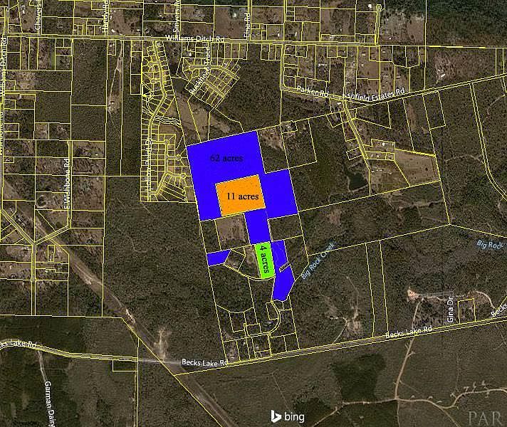 ****NOTE: As of July 18, 2020, there will be a 15% discount on 63 of these acres but with a requirement for time of closing. Please contact the listing Agent for more into. ******** This is a beautiful wooded parcel that would make a great hunting estate / park or subdivision that's near the Escambia River and a public boat ramp and waterfront park (Becks Lake Fish Camp). Good developable properties are getting scarce and Becks Lake Rd offers property that has not been available before. Because no land has generally been available for sale on Becks Lake Road it has received no attention in the past. Now a parcel that's been in a family for years is being placed on the market. A wonderful nature themed development could be built here. Adjacent 140 acres may be available. Check with agent for more info. This land of only minutes away from 9 mile Road and Navy Federal. ECUA is also planning 2 Commerce Parks on Becks Lake Road that will employ 1000's of workers! This is a total of approx. 78.21 acres broken down into 3 parcels, this one and 2 others which are listed separately. It shares a common property line with the east property line of Huntington Subdivision located just south of Williams Ditch Rd. It is thought that this grouping could be an excellent extension of the Huntington Subdivision southward towards Becks Lake Rd with a possible entrance / exit on Becks Lake Rd at some point. Information given is believed to be correct but should be independently evaluated. Court approval may be necessary to finalize a contract. Contact the listing agent for more info.