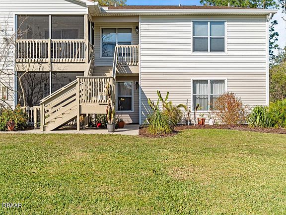 Welcome to this charming 2 bedroom, 2 bathroom first floor unit in sunny Daytona Beach, FL! Enjoy picturesque pond views from your screened-in patio while sipping on your morning coffee. The kitchen features trendy butcher block countertops, adding a touch of elegance to the space. Whether you're looking for a vacation home or year-round residence, this property offers the perfect blend of comfort and convenience. Don't miss out on the opportunity to make this dreamy oasis your own! Newer HVAC and water heater .... Also HOA covers everything exterior roof, pest control, exterior paint, common areas, fitness center and flood insurance. THIS HOME DID NOT FLOOD.