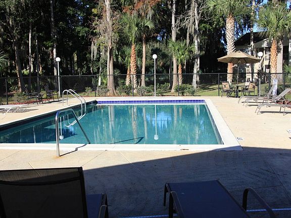 What a great location for this first floor condo! As you enter, you'll see 12'' tile throughout for easy maintenance. Open living room has upgraded ceiling fan and coat closet. As you look to your right you'll find the guest bedroom and bathroom. Bathroom has updated vanity, 2 closets (one for clothes or brooms/sweeper and one for linens). Guest bathroom has access from hallway and bedroom. The laundry area is conveniently located in hall closet. Stamped tin look back splash adds a touch of rustic beauty to the kitchen. There's also generous cabinetry, deep sinks, stainless steel appliances with ceramic top range and self-clean oven. Master bedroom has walk in closet and sliding glass doors that lead to a tiled floor screened porch. Storage closet in porch too!There is also access to the screened porch from the front entrance; Property has club house, pool with bus stop on Big Tree. This would be a great long-term rental.