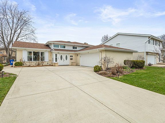 Step into this beautifully renovated split-level home-a perfect blend of comfort, function and modern style! As you enter the bright and airy foyer, you're greeted by vaulted ceilings and an abundance of natural light. The main level offers a spacious living room, a formal dining area and an eat-in kitchen features a waterfall island, high-end stainless-steel appliances and newer cabinetry and finishes. Just a few steps down, the lower level opens up to a family room with a freshly refinished wood-burning fireplace. This level also includes a versatile fourth bedroom or home office, an updated full bath, a laundry room, plus additional storage area and a utility room. Step outside through the sliding doors to your private backyard retreat with a newly tuckpointed patio enclosure. Upstairs, you'll find three generously sized bedrooms, including a primary suite with its own private ensuite full bath. Additional upgrades throughout the home include newer wood flooring, recessed lighting with smart switches & energy efficient LEDs, new energy-efficient windows, a new roof with gutter guard system, newer furnace and enhanced attic insulation and air seal. You'll also love the newer concrete driveway which can accommodate all guest parking. Oversized two-car garage with epoxy flooring and plenty of space for storage or a workshop setup. Located in a highly sought-after neighborhood, close to parks and within a top-rated school district! Don't miss your chance to make it yours-schedule a showing today!