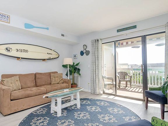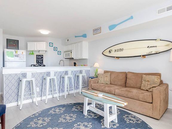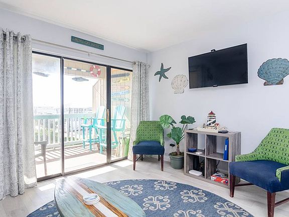 Newly remodeled with LVP flooring throughout and stunning new kitchen countertops, this quaint third (top) floor condo will beckon you home after a relaxing day on the beach or fishing from the pier. There's a King bed in the primary bedroom, and a Queen sleeper soda in the living area. Maybe best of all, this little gem has a bath and a half! We've even included a Twin roll away just in case you need sleeping for 5. The kitchen is well equipped for the meals you make at home.